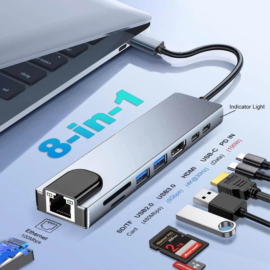 - 8-Port Versatility: Commonly includes HDMI, USB 3.0, USB-C PD Charging, Ethernet, SD/TF Card Readers, and 3.5mm Audio.