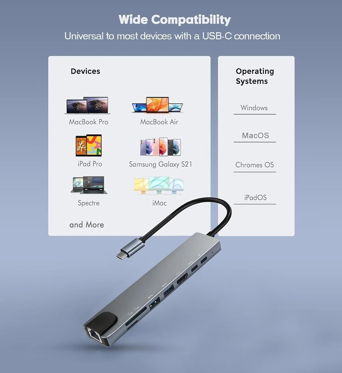 Maximize your efficiency and minimize dongle clutter. This 8-in-1 USB-C Hub is the ultimate connectivity solution for a streamlined and powerful workspace.