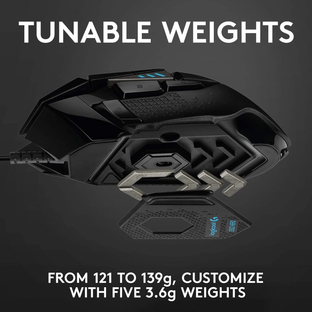 LIGHTSYNC RGB (G502 X PLUS): Customizable RGB lighting that can sync with your game content, audio, or other Logitech G gear.