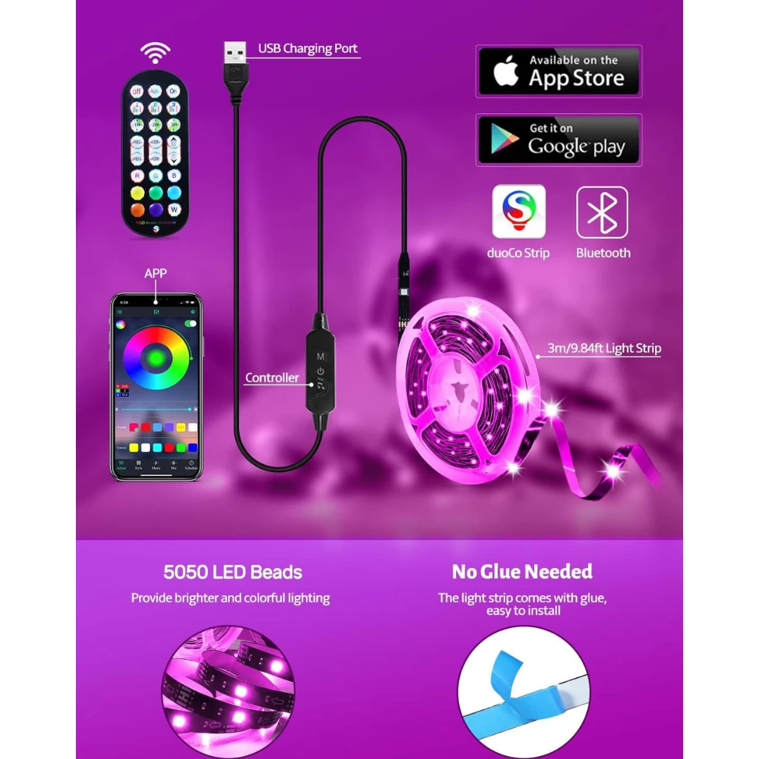 With a simple USB-powered connection, there are no complicated wires or electrician required—just plug into your TV's USB port or any standard USB adapter. Choose from a spectrum of 16 million colors and multiple dynamic lighting modes (including flash, fade, and smooth) using the included remote control. The strong self-adhesive backing ensures a secure, clean fit on any surface, making it the perfect upgrade for home theaters, gaming stations, and decorative lighting.