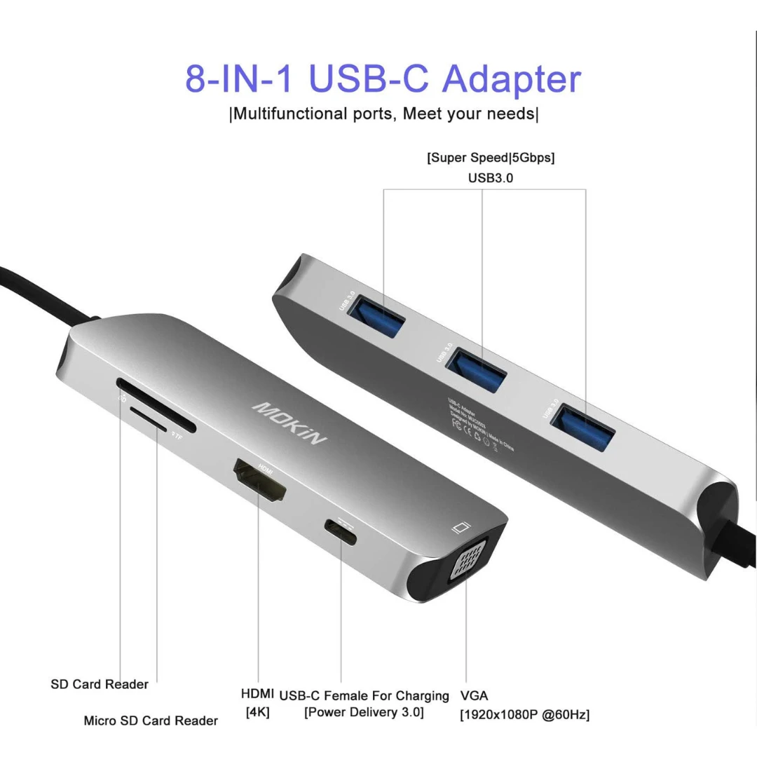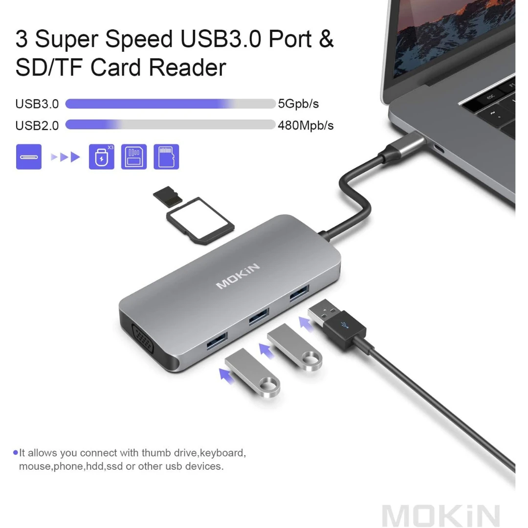 Bridge the gap between cutting-edge technology and classic display systems with this versatile 8-in-1 USB-C Hub. Designed for professionals who need maximum compatibility, this hub expands your laptop's capabilities with a comprehensive range of ports, including a crucial VGA connector for older monitors and projectors. It's the all-in-one solution for presentations, office work, and home setups, ensuring you can connect to any device, anywhere.